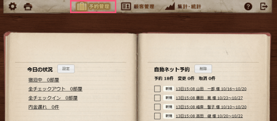 ホーム画面の上部にある「予約管理」ボタンをクリックします。